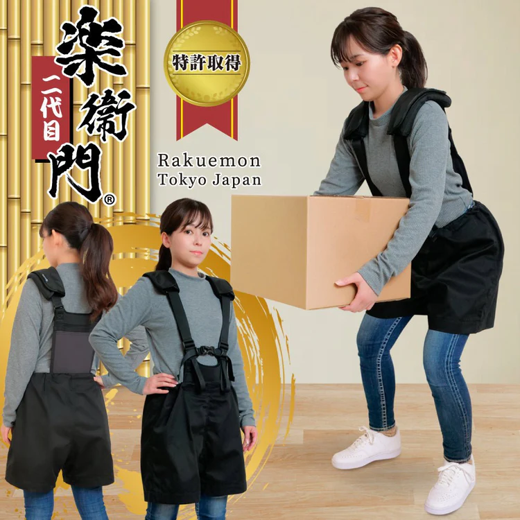 腰の負担を軽減するアシストスーツ「楽衛門」の二代目として登場した製品。より多くの現場で試験的に導入してもらえるよう、お試し価格7,744円という手頃な価格設定で提供されています。